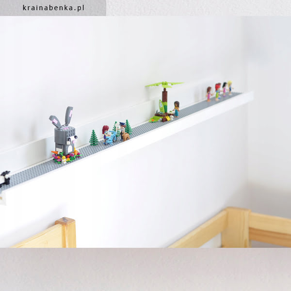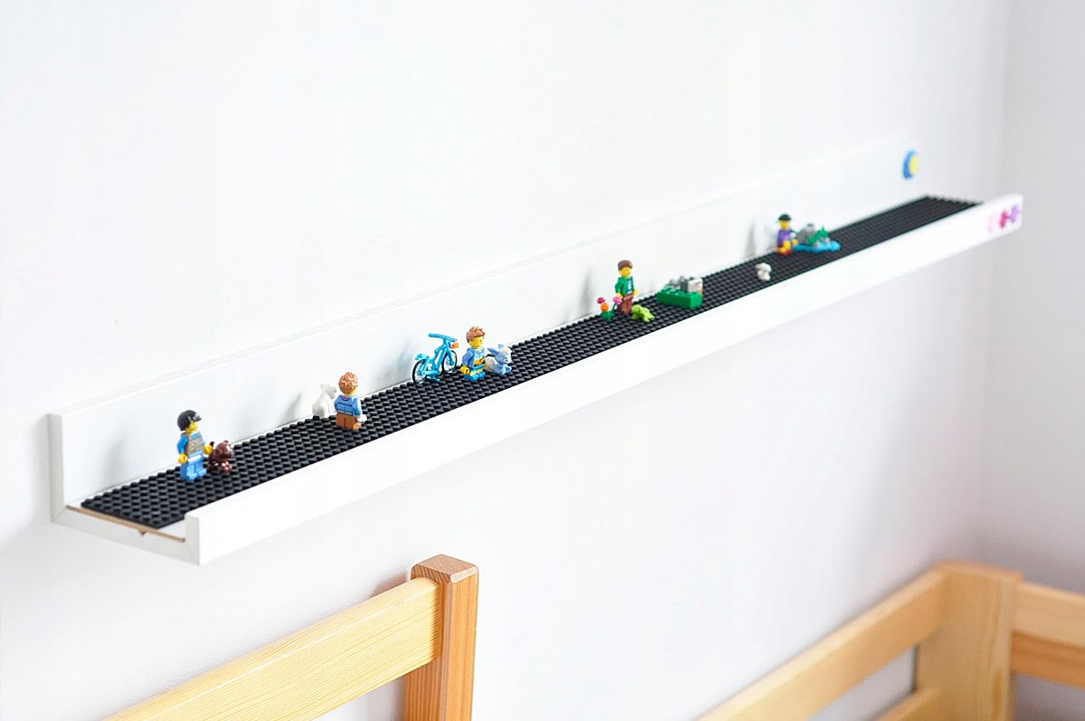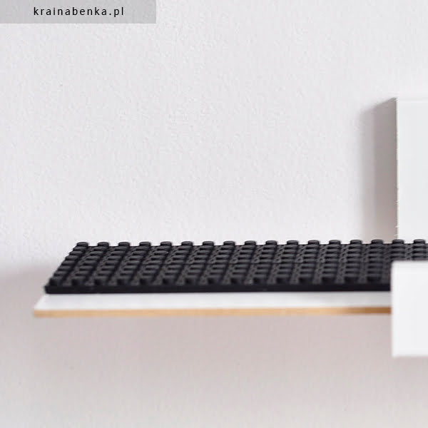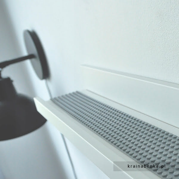 Półka wisząca z wymiennym wsadem wyposażonym w płytkę kompatybilną z systemem LEGO. Dzięki niej Twoje dziecko może tworzyć, budować i eksperymentować bez ograniczeń – a gotowe dzieła z dumą prezentować na ścianie.